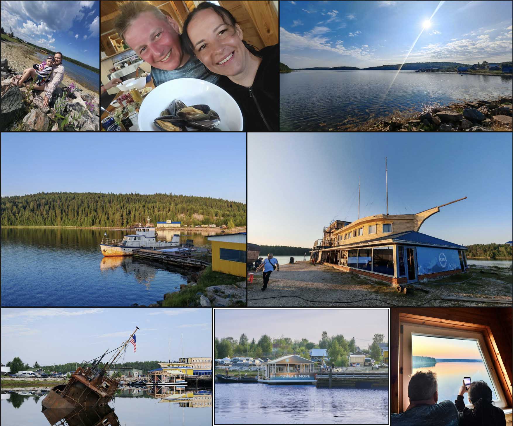Сегодня мы видели кроме богатого морского мира, ещё и канаты, заросшие ракушками, остров где добывали слюду, огромный пруд с чёрной-чёрной водой, исследовали затонувший корабль, заросший растениями, илом и блеснами, которых было огромное количество, самых разных размеров, форм и цветов. На Чкаловском мы сдавали ориентирование, это было очень весело. Все устали, но после ужина сидели допоздна, расходится не хотелось, ведь завтра возвращаемся домой.