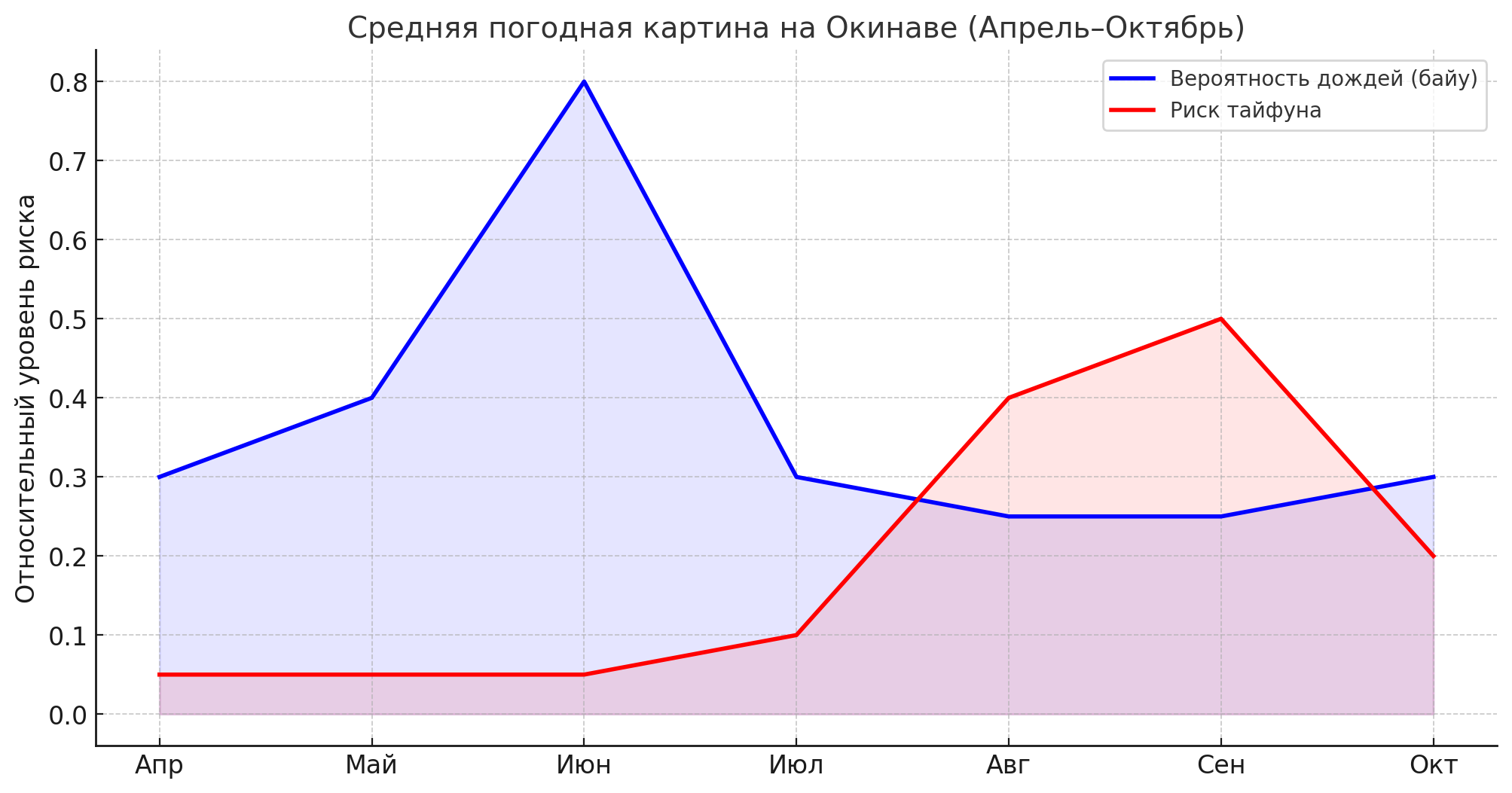 - В июне и начале июля тайфуны практически не случаются (за последние 10 лет — лишь один активный июнь 2018 года).